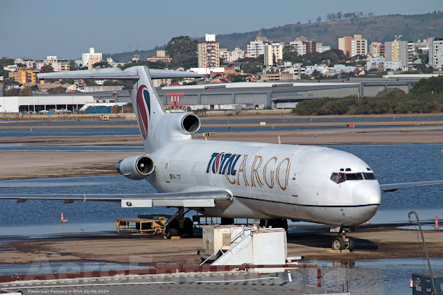 Boeing 727-200 cargueiro da TOTAL CARGO, matrícula PR-TTP, fotografo em 02 de junho de 2024 no Aeroporto Internacional Salgado Filho, em Porto Alegre (POA/SBPA). A aeronave está retida em Porto Alegre há mais de um mês, quando o aeroporto foi fechado por conta da inundação que atingiu a capital gaúcha e região.